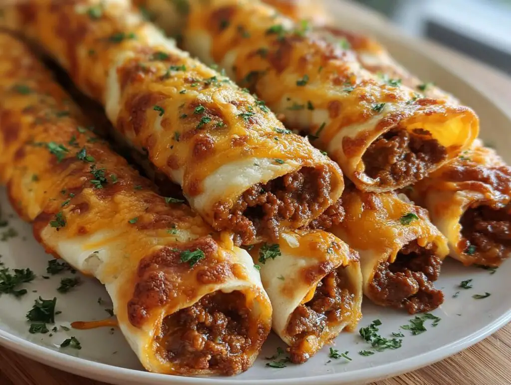 Cheesy Taco Breadsticks are a savory and easy snack or appetizer. They feature soft pizza dough filled with seasoned taco meat and melted cheese, baked until golden and crispy. Perfect for parties, game days, or a quick meal.