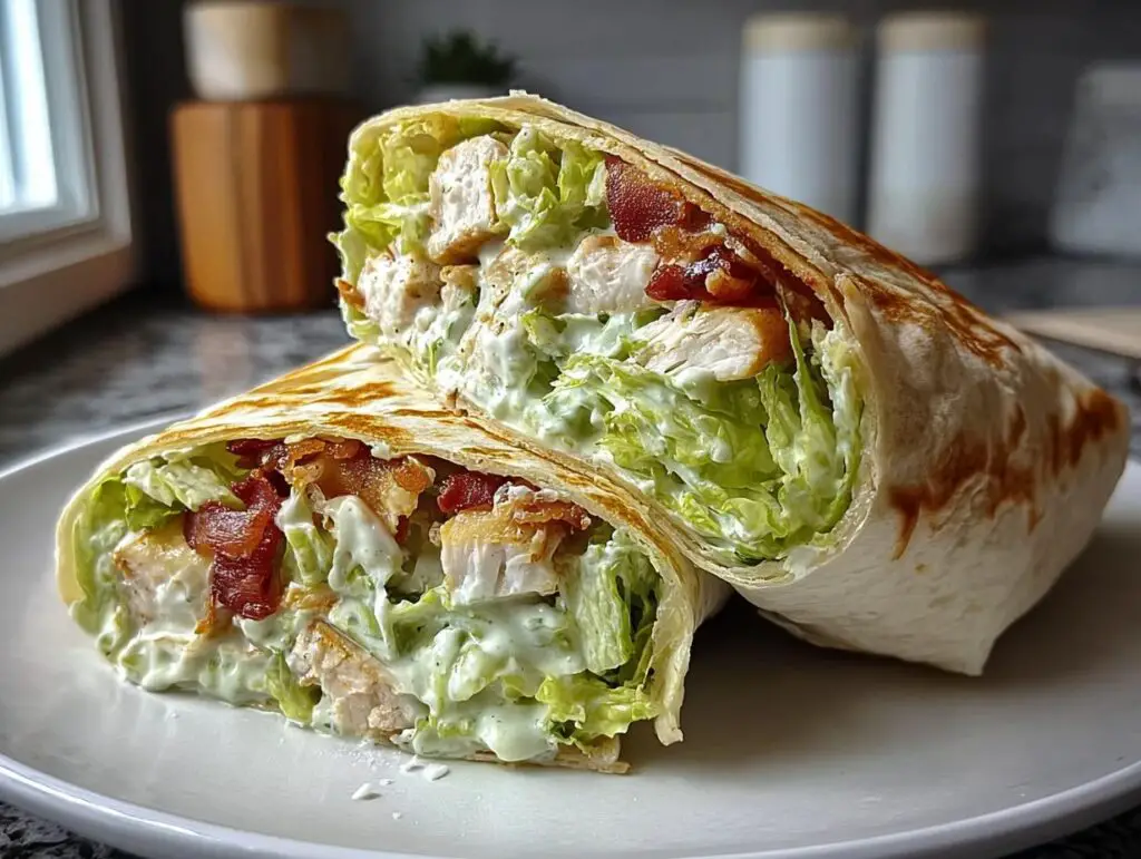 A quick and flavorful Chopped Chicken Caesar Salad Wrap perfect for busy days, offering a satisfying handheld meal with classic Caesar flavors.
