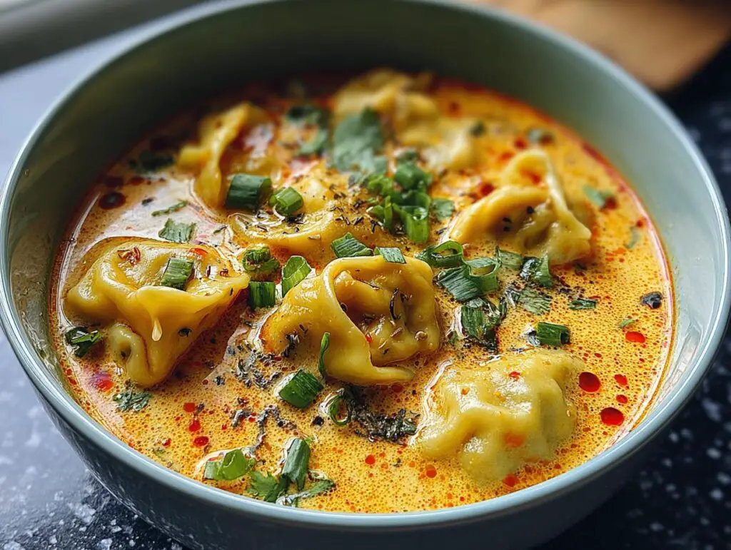 A comforting and flavorful Curry Dumpling Soup featuring Thai red curry, creamy coconut milk, and hearty vegan dumplings. This easy recipe comes together in under 30 minutes and is perfect for a cozy meal.