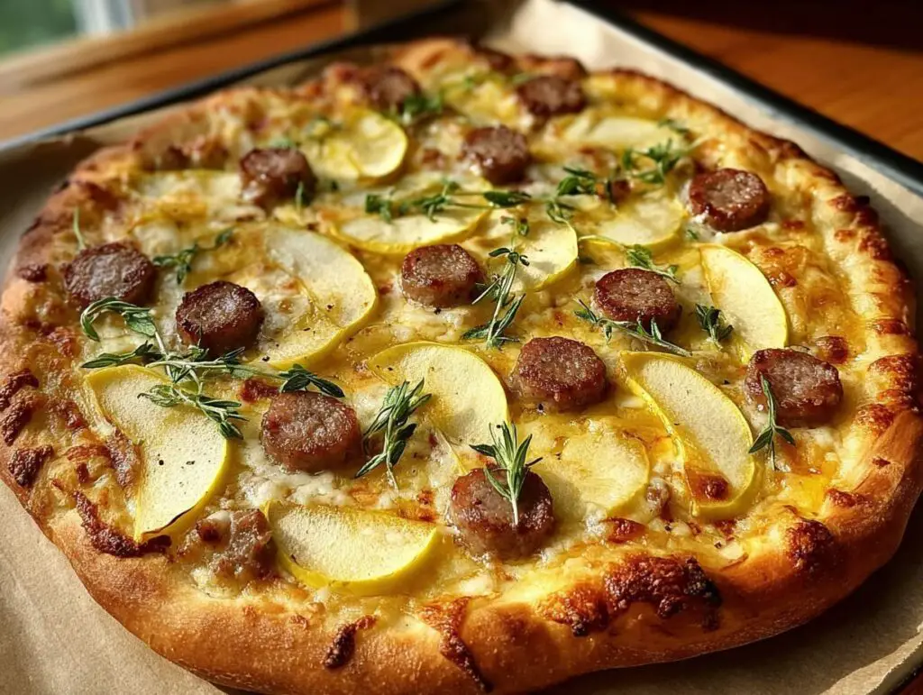 The magic lies in the balance of flavors: smoky kielbasa, tart Granny Smith apples, rich smoked Gouda, and that tangy spicy brown mustard base. This combination creates a honestly special profile, making it the best Oktoberfest pizza experience.