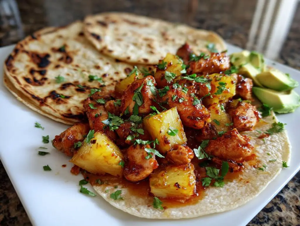 Quick and flavorful one-pan chicken and pineapple tacos, perfect for a weeknight meal. This recipe features marinated chicken and sweet pineapple roasted together, served with fresh toppings.