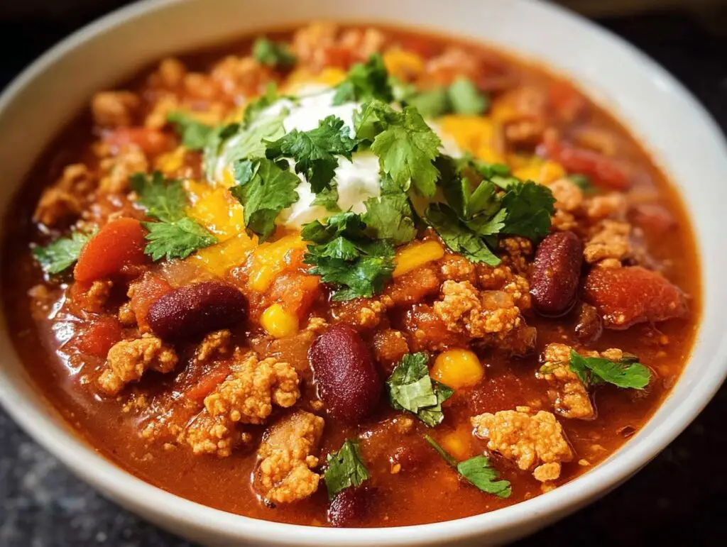 A hearty, protein-packed, and easy-to-make Slow Cooker Turkey Chili perfect for busy weeknights. This healthy chili recipe is full of rich flavors and wholesome ingredients.